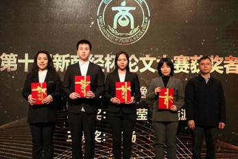 随后是第十届新商经杯论文大赛的颁奖活动。本次新商经杯论文大赛历时三个月,共有三篇论文脱颖而出。刘志雄副院长为我们宣读获奖名单,他们是:一等奖获得者匡韵逸;二等奖获得者李泉莹、于钱源;三等奖获得者张畅。