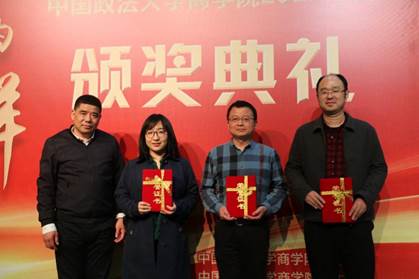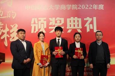 最后一轮颁奖是2022年就业工作贡献奖的颁奖仪式。商学院2022年荣获必赢242net官网就业先进集体奖,学生就业工作成绩斐然。这一切离不开为学生就业辛勤拓岗做出贡献的老师们,获奖老师有姚龙艳老师、徐庆老师、丛颖男老师和李伯尧老师。商文江院长为获奖老师们颁奖并合影留念。