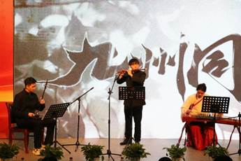 工商管理2101班的谈慕曦、国际商务2202班的陈旭阳和经济2201班的王陈跃天三位同学为我们上演了精彩的民乐合奏《九州同》,激昂的旋律,雄浑的气势带来了一场沉浸式的听觉盛宴。
