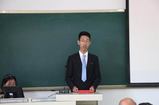 接下来,贾文轩发表演讲。他展示了自己的工作经历,分享了从中获得的经验与启发,并且描述了自己对商学院学生委员会的未来规划。他表示如果当选学委会主任,会做到“在其位,谋其政”,立志把学委会打造成一个高效的学生组织。