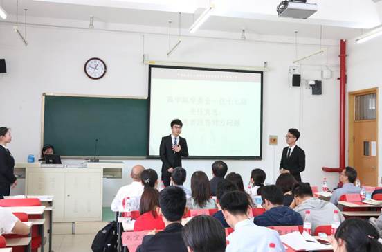 之后,刘纪鹏院长上台致辞。他对四位候选人的演讲进行了点评,表示四位同学的认真与严谨给自己留下了深刻的印象。他强调担任商学院学生会组织负责人是一次很有挑战也富有收获的体验,可以增强同学的竞争力和领导力。