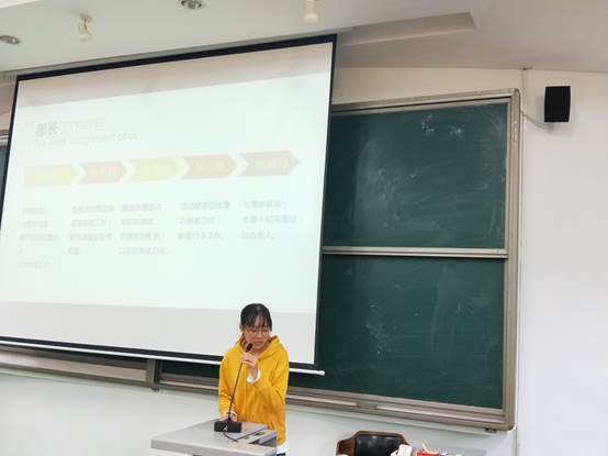 嘉宾工作介绍完毕之后,各部门派出两名部长代表上台进行交流发言。部长们结合自身经历,与在会人员分享对自我的定位及认知、对所在部门工作的认识与体会、对接下来工作的展望与期许。