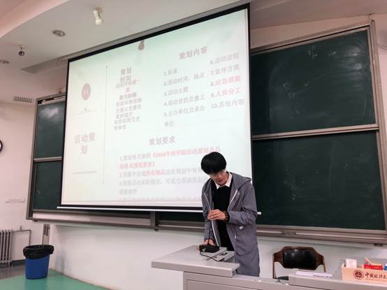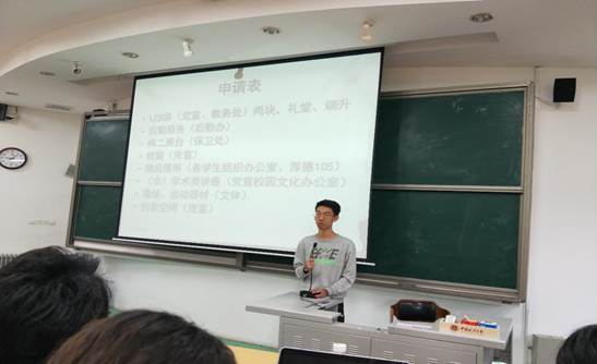 紧接着,一届十七任学生会主席刘宜鑫为大家介绍了活动审批的注意事项。他强调了申请工作的规范以及学生活动申请流程在内的多项审批要求,并且帮助新任部长明确了活动准备事宜、规范活动审批工作。