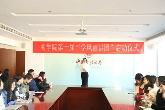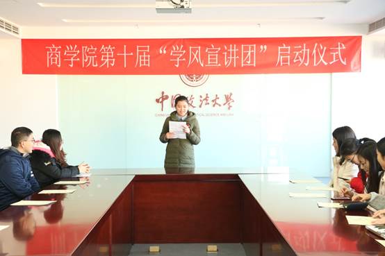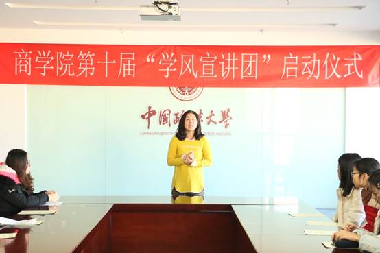 2018年12月7日,必赢242net官网第十届“学风宣讲团”活动正式启动。本次活动由商学院分团委主办、商学院学生委员会督察部承办。出席活动的嘉宾有商学院分党委副书记、副院长何欣,分团委书记、2018级辅导员郭虹,2016级辅导员王文培,2017级辅导员吴颖和双学位辅导员贾娜琳捷。第十届“学风宣讲团”成员以及大一、大二的班长及团支书也受邀参与此次活动。