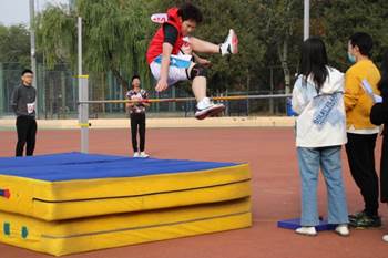 与此同时,田赛项目也拉开帷幕。跳远的选手们在轻快的助跑后纵身一跃,沙粒飞溅,在场地上一次次刷新过去创下的记录;几公斤重的铅球从选手的手中飞出,划出一道道完美的抛物线。跳高比赛中,秦梓翔和郑小琼两位同学拔得男女子组头筹;跳远比赛中,黄梓晨和唐欣悦两位同学取得了让人惊叹的成绩,分获男子、女子组第一名。铅球比赛中,王伟诚和李蓉两位同学荣获男子与女子组冠军。