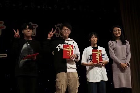最后,进入最令人期待的颁奖环节,主持人宣布获奖名单:跨班组合《你要跳舞吗》、经济班《闪光的我们》以及国商二班《kingdom》分别以85.25分、83.75分和83.25分的高分荣获第一、二、三名,新生辅导员张叶为获奖节目代表进行颁奖并合影留念。