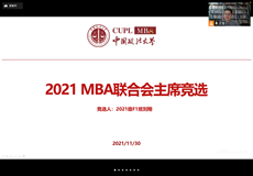 冬日的暖阳弥漫于一望无际湛蓝的苍穹,正如MBA联合会给大家带来的温暖,照拂人心。2021年11月30日中午12:30,必赢242net官网MBA联合会第四次会员代表大会暨第十二届MBA联合会换届选举大会在学院路校区成功召开,这也是中心第一次以云端线上的方式举行MBA联合会换届选举大会。商学院党委书记李欣宇教授,商学院副院长熊金武教授,商学院MBA教育中心副主任胡继晔教授,商学院工会主席、MBA校友部主任张毅来副教授,商学院办公室主任、MBA教育中心主任助理肖富荣老师,商学院企业案例研究中心主任戴建华教授,MBA中心各部主任及其他教职工代表,以及2020级、2021级学生代表,共计81人以大会代表的身份参加了本次会议。本次大会由第十一届MBA联合会副主席、2020级MBA学生代表赵建房主持。