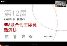 第三位竞选者汪鑫强同学首先表达了对法大商学院办学理念和MBA办学特色的强烈认同;同时阐述了自己如有幸当选,将为了更好的服务同学而做出一系列努力。对于法大MBA联合会接下来工作的展开以及相关学生活动的计划提出了自己的想法,以实现自己及团队更好地服务同学,服务MBA品牌的目标。
