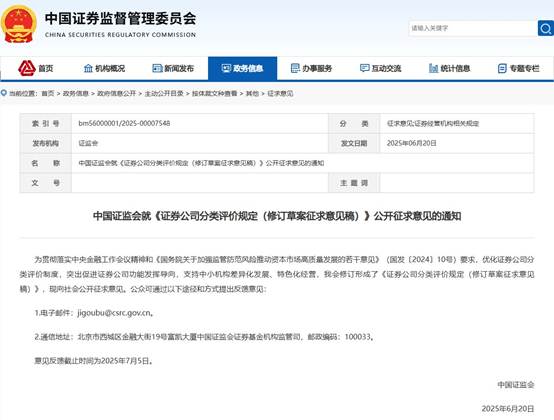 (央视财经《财经态度》)中国证监会日前修订并发布《证券公司分类评价规定(修订草案征求意见稿)》(下称《征求意见稿》),目前正在向社会公开征求意见。