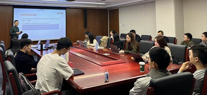 2023年11月3日,商学院法商管理系在学院路校区教学图书综合楼815举办第十三期法商管理系青年学术沙龙。法商管理系副主任许恒老师以《数字经济前沿专题与论文写作》为主题进行分享,沙龙由法商管理系副主任华忆昕老师主持。