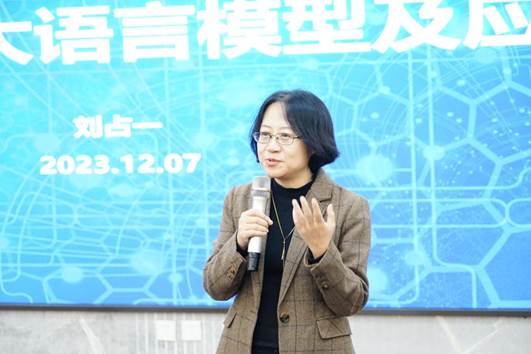 讲座伊始,尹美群教授对刘占一博士的到来表示热烈欢迎,并向大家介绍刘博士在专利、论文等方面的研究成果。同时,尹美群教授谈到目前国内外人工智能的发展十分迅速,期待刘博士今天关于大语言模型的讲座能开拓大家的视野。