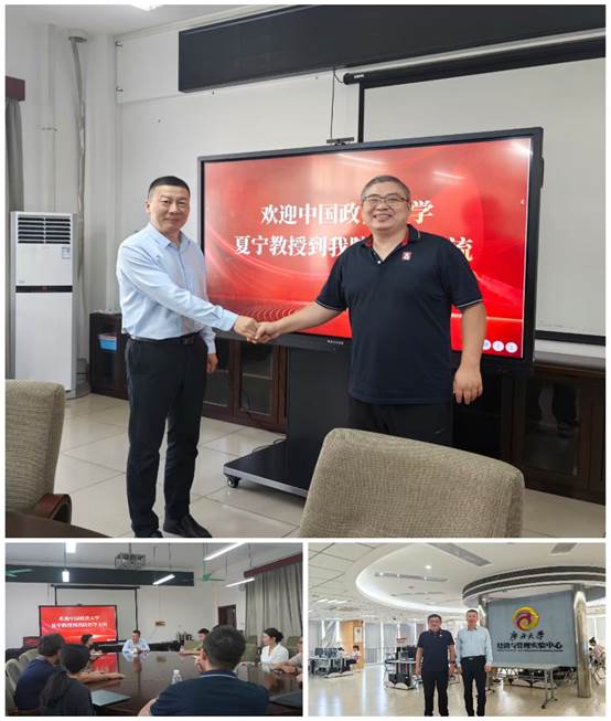 10月14日上午,夏宁教授受邀来到海南大学国际商学院做学术交流。海南大学国际商学院成立于2023年6月18日,前身为原海南大学管理学院和经济学院。学院目前拥有工商管理一级学科博士学位授权点及博士后科研流动站,工商管理、农林经济管理、管理科学与工程和应用经济学等4个一级学科硕士学位授权点。许能锐副院长对夏宁教授的到来表示欢迎,会计系主任吴锡皓教授主持了会议。夏宁介绍了法大会计审计专业发展状况,法大会计系依托本校管理学和法学学科专业优势,培养了厚基础、宽口径、高素质、强能力的法务会计、法审融合特色人才。夏宁参观了海南大学会计中外人文交流研究院和自贸港反洗钱教育基地,双方就下一步的研究合作进行了探讨。