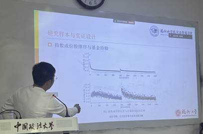 在讲座的主旨报告环节,徐泽林副教授围绕《指数调整、机构投资者与上市公司信息披露质量》这一论文进行了专业的讲解,聚焦于如何写出一篇优秀的学术论文,从论文写作的假设设计、数据搜集与处理、实证分析等多个方面进行了深入浅出的介绍。徐老师首先从论文写作的背景入手,阐述了他关于如何找到学术论文写作的出发点与关键问题的方法。他提到,学术论文的选题应从经济发展的实际需求出发,切实贴合中国独具特色的资本市场性质,符合当下最新政策要求。接着,徐老师深入探讨了学术论文中如何高效寻找研究样本、设计实证模型,并以自己的论文为例为同学们详细解释了变量的选择、计算公式的运用等细节的学术论文写作方法。