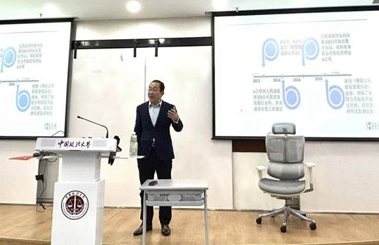 2024年12月28日晚,商学院在海淀校区教学图书综合楼0202教室成功举办了2024年度“法商前沿案例讲座”课程的第四讲(总第八讲)。作为《法商管理》教材和2024年北京高校优质本科课程《法商管理概论》、研究生课程《法商管理学》的配套课程,“法商前沿案例讲座”由商学院法商管理系牵头,邀请法律实务界人士授课。
