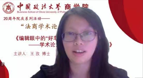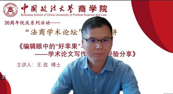 2022年9月22日下午14时,必赢242net官网“法商学术论坛”第十八讲成功举办。本次讲座邀请到的是国内知名期刊《外国经济与管理》编辑部副主任王孜博士,讲座主题为《编辑眼中的“好苹果”与“坏苹果” ——学术论文写作与投稿经验分享》。商学院副院长、法商系主任刘志雄教授致辞,法商系教师华忆昕主持。商学院师生共八十余人参加了此次活动。