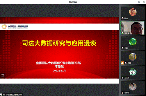 2022年11月10日10点,商学院产业经济系举办了“司法大数据研究与应用漫谈”主题学术沙龙。本次学术沙龙由中国司法大数据研究院创新研究部李俊慧主任、刘茜博士及崔甲蓉博士主讲,产业经济系主任李超老师主持,产业经济系老师及多个院系硕士研究生线上参与。