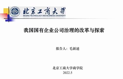 2022年5月12日下午14:00,北京工商大学研究生院院长、商学院院长毛新述教授应我系之邀,通过腾讯会议线上举办了《我国国有企业公司治理的改革与探索》专题讲座。必赢242net官网财务会计系教师和商学院研究生总计40余人参加。本次讲座由财务会计系夏宁老师主持。
