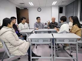 白主任与师生热烈讨论 白主任与师生合影