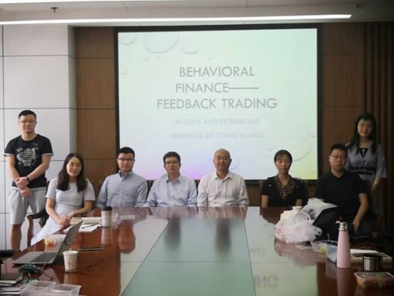 2019年5月24日下午,商学院资本金融系师生在学院路校区科研楼B206举行了本年度第七期“教师学术论坛”。本期教师学术论坛由黄聪老师主讲,他和大家分享的课题是“行为金融学:反馈交易模型及其拓展”。
