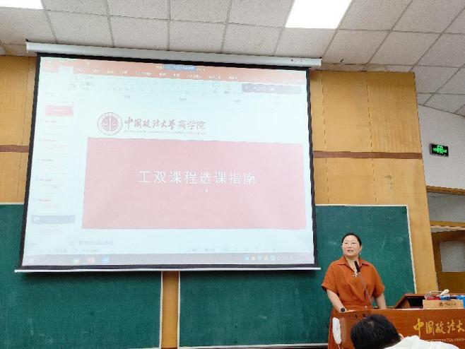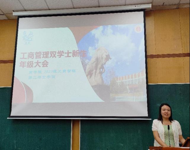 大会由双学士辅导员贾娜琳捷老师主持。首先,贾老师对同学们加入商学院大家庭表示真挚的欢迎并向同学们介绍了商学院第二学士学位的基本情况。贾老师还向大家介绍了商学院第二学士学位“一主两翼,融合创新,培养社会需要的法商复合型人才”的培养理念和培养目标,让同学们对于商学院第二学士学位有了更深的了解。本次大会参会的还有双学士辅导员吴颖老师、教学科研办冯惠老师、党务办公室徐庆老师。