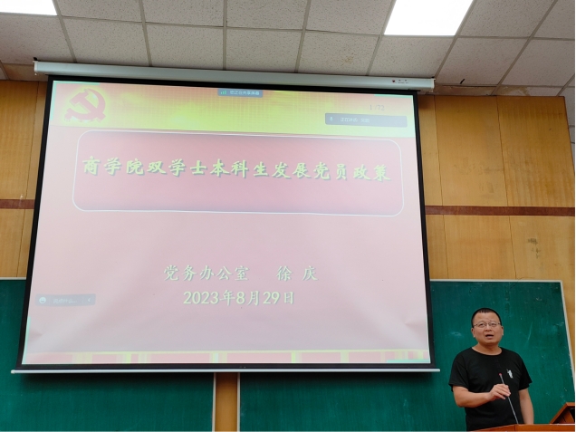 随后,教学科研办冯老师为同学们介绍了商学院第二学士学位的培养方案及课程、考务安排,以及选课指南;双学士辅导员吴颖老师为大家介绍了相关的就业政策、学业管理、日常审批、安全教育和需要履行的相关手续。三位老师的介绍对于同学们接下来两年的学业和就业安排有着重要的意义。在这之后,党务办公室徐老师为大家介绍了党组织关系转接、党员发展、入党积极分子接续培养和预备党员转正等内容。