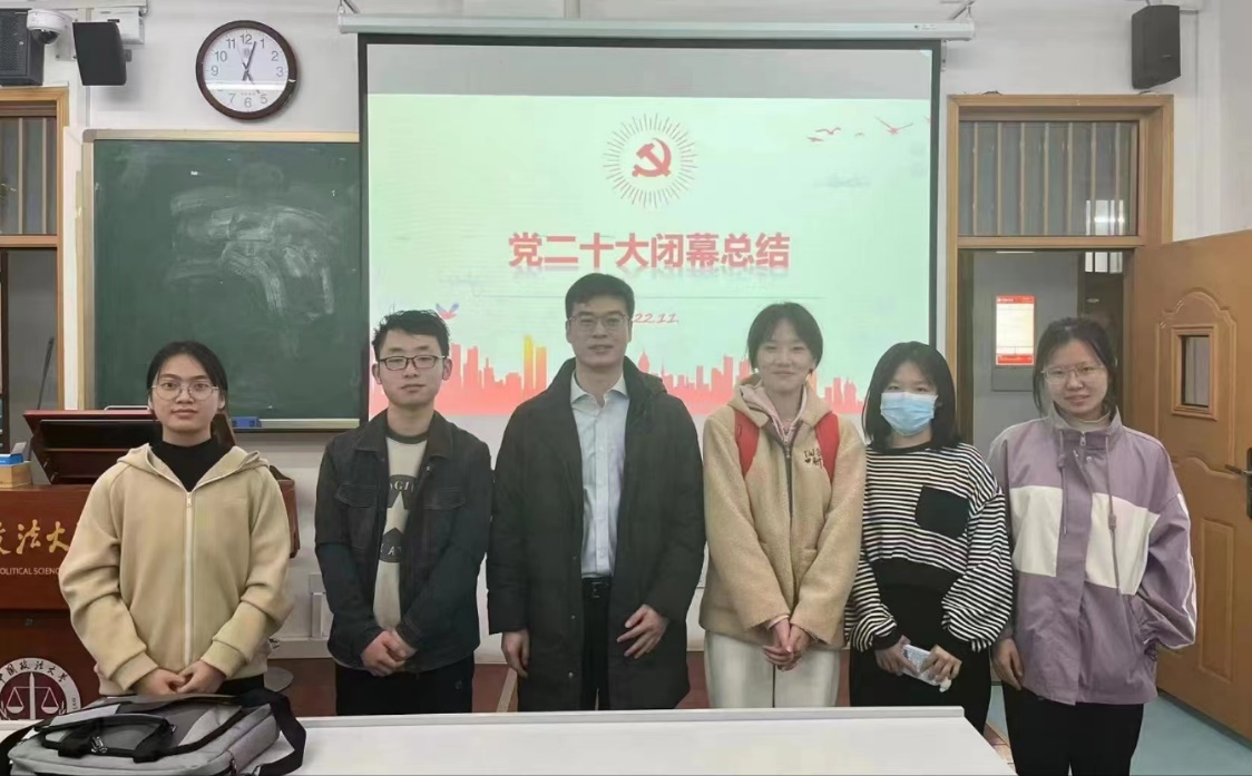 图:熊柴老师在“党的二十大和我的人生路”主题班会后与部分同学合影