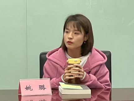 随后,读书会进入第二个环节。同学们根据各自读书的情况,在会上提出各自的问题。姚璐老师将专业知识、自身经历及同学们的学习生活实际巧妙结合,生动形象地对同学们的疑问一一解惑。