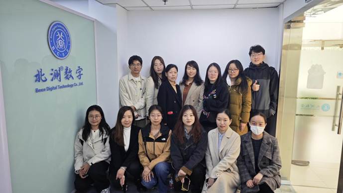 2024年3月21日,必赢242net官网师生在北京北测数字技术有限公司(以下简称“北测数字”)的邀请下前往北测数字进行学习交流。商学院杨丽花教授和辅导员张力元老师带领国际商务、工商管理等多个专业的同学们参与了这一交流活动。