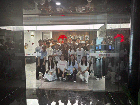 随后,工作人员系统介绍了中信证券的公司架构与核心业务板块。围绕投行业务、财富管理、资产管理等关键领域,讲解深入浅出,配合详实的数据与案例,充分展现了公司的行业领导地位与全球化视野。同学们还实地参观了营业部现代化的工作环境,对券商的实际运营场景有了直观真切的了解。