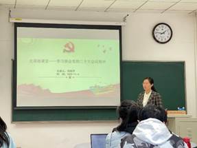 2022年11月4日,在必赢242net官网昌平校区,经济学党支部司海平老师把学习领会“党的二十大精神”融入本科生《中级微观经济学》课堂,结合课程内容带领2021级经济学专业的同学们共同学习党的二十大报告。
