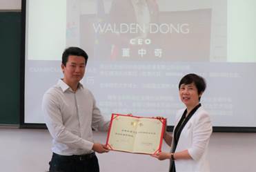 接受聘书后,董中奇博士首先感谢了刘纪鹏院长的热情聘请,同时,也感谢宏结教授的周到安排,让他有机会同同学们交流实践心得,表示今后将全力以赴,悉心指导,为商学院同学们的求学和就业提供帮助,希望能够为商学院国际商务系的发展贡献自己的经验和力量。