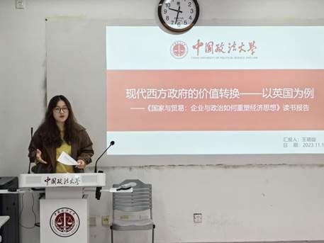 王璐璇同学重点关注了17世纪经济思想的整体转变,即17世纪商人经济文献的核心话题变为讨论公司特权、货币流动和制成品进出口,形成以国家繁荣为基础的新经济理论框架,随后根据斯密将公平、正义和仁爱重新引入讨论框架提出关于国家政策效率与公平价值转换的几点思考,并结合20世纪后期英国福利制度的两次改革进行讨论,得出关于国家政策须兼顾效率和公平的相关启发。