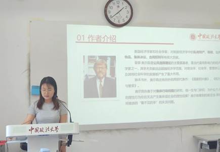 靳耀祖同学在点评中肯定了赵于钧同学的汇报逻辑清晰,以思维导图的方式对全文进行了系统性梳理,明确了集体共同利益与一致行动之间的关系,以经济学角度解释了集团行为为什么会缺失、多元化利益失衡与社会公平的问题。此外,赵于钧同学的汇报引发了关于如何运用经济学原理来解释集体行动成功原因的思考,特别是在如何将非数理化的因素纳入经济模型中进行考量。黄立君老师对赵于钧同学在讲解中采用框架图的方法表示肯定,认为这种方式能够有效提升演讲的清晰度和系统性。同时,她也提醒大家在演讲过程中应注重与听众的眼神交流,以增强互动性,吸引听众的注意力。此外,黄老师还引用了美国经济学家康芒斯的著作《集体行动经济学》中的观点进行了拓展和延伸。
