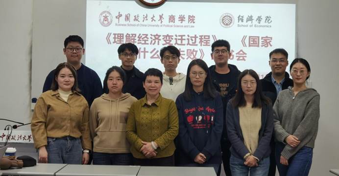 2024年11月1日下午,商学院企业史研究所、经济学党支部与北京大学经济学院经济史学系联合举办年度第6期研究生经典研读报告会暨科学教研活动。本次报告会采取线上线下相结合的方式进行,两校师生对道格拉斯·C·诺思所著的《理解经济变迁过程》,以及德隆·阿西莫格鲁和詹姆斯·A·罗宾逊所著的《国家为什么会失败》进行研读和讨论。
