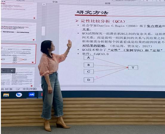 针对营商环境生态与就业这一沙龙主题,邓晓老师基于就业的视角探究营商环境对就业的促进效果,并提出了设计优化营商环境政策以促进实现就业目标。邓晓老师创新性地采用定性比较分析法QCA,结合定性和定量两种分析,基于动态视角,对比疫情前后,探究了七个营商环境生态对就业数量的影响。在剔除单一变量影响后,邓老师展示了不同政策组合的效果,并以专业的管理学视角结合人力资源分析了研究结果。同时邓晓老师还结合数字经济背景,对2019年数据进行基准回归和交互回归处理,再做QCA分析,找出了营商环境优化对就业质量和就业数量的影响和有效路径。