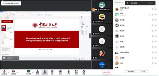 2022年9月29日上午,商学院资本金融系第一期金融学读书研讨会通过腾讯会议在线上成功举行。参加本次读书研讨会的有李伯尧老师以及2022级金融专硕和学硕的同学,以李伯尧老师最新的研究成果How does bank equity affect credit creation? Multiplier effects under Basel Ⅲ regulations为研读文献,2022级金融专硕廖韬、夏天宇、王帅三位同学为本次读书会的主讲。