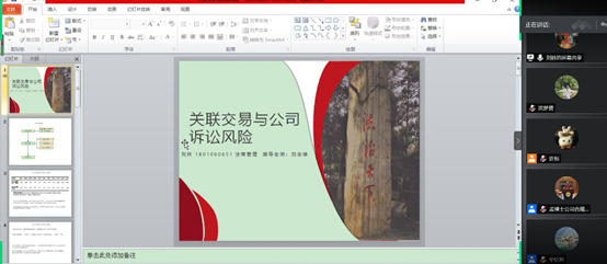 2020年7月24日上午,商学院法商管理系在线上举行毕业论文开题答辩。2018级硕士研究生杨璐和刘林同学进行论文开题汇报,刘志雄教授、许恒副教授、华忆昕老师、孟令星老师、唱小溪老师以及2019级硕士研究生参加本次论文开题答辩工作,本次开题答辩由许恒副教授主持。