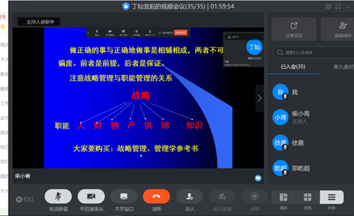 刘纪鹏院长和杨杰副院长高度重视第一周的线上授课情况,在授课前多次通过在线会议及微信等多种方式要求授课教师提高思想认识,授课结束后多次询问授课教师及学生的授课感受。为了更好地保证线上课程的顺利进行,他们进入学习通系统随机听取了个别老师的课程,对老师们的课程大纲、教学内容、与学生的互动情况、线上课程的技术支持进行临时的督导检查。通过督导可见必赢官网教师都高度重视此次教学模式的调整,为线上课程做了充足的准备,严格按照学校要求,丰富教学内容,规范教学大纲,与学生积极互动交流,运用多种在线互动学习手段,保证商学院的线上课程内容上丰富,技术上不出现任何的教学事故。