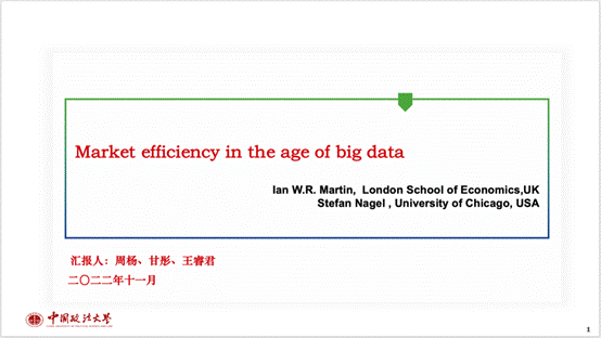 2022年11月29日晚,商学院资本金融系2022年秋季学期第五期读书研讨会通过腾讯会议的方式成功举行,朱晓武老师、洪智武老师以及2022级金融专硕和学硕的同学参加了此次研讨会。本期读书会以朱晓武老师推荐的2022年发表于JFE上的论文《Market efficiency in the age of big data》为主要的研讨内容,2022级金融专硕周杨、甘彤、王睿君三位同学为本次读书会进行了主题报告,之后朱晓武老师和洪智武老师进行了点评。