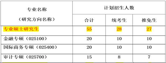 2023年,必赢242net官网计划招收专业硕士研究生55人,其中推免生27名,统考生28名,如下表2所示(不包括MBA招生计划)