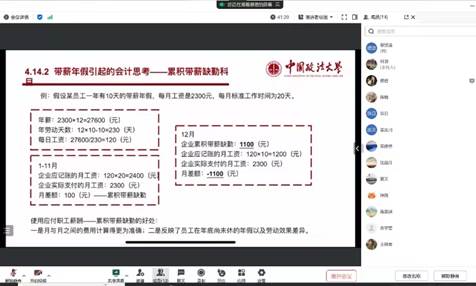 2023年12月15日上午,商学院财务会计系党支部在线举办了主题党日活动暨2023-2024学年秋学期第二期读书会。本次读书会延续第一期选读书目《让数字说话——审计,就这么简单》内容。读书会由何顶老师主持,财会系夏宁老师、余宇莹老师、姜汝川老师、梁建桥老师以及审计专硕与会计学硕专业的同学们参与了读书会的交流讨论。