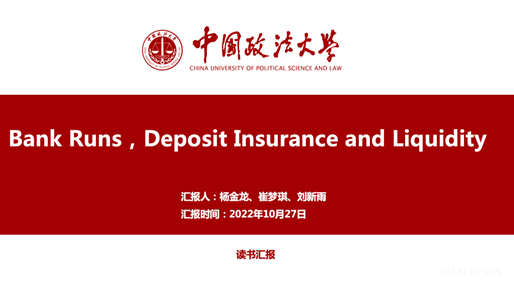 本次读书会由杨金龙同学、崔梦琪同学及刘新雨同学进行汇报,本期研讨的论文是今年诺贝尔经济学奖获得者戴蒙德与迪布威格于1983年发表在《政治经济学期刊》的关于银行挤兑问题的经典论文《Bank Runs, Deposit Insurance and Liquidity》。