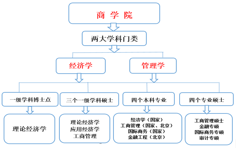 目前,商学院拥有理论经济学一级学科博士学位授权点,理论经济学、应用经济学和工商管理3个一级学科硕士学位授权点,以及工商管理、金融、国际商务和审计4个专业硕士点;3个国家一流本科专业(经济学、国际商务和工商管理),2个北京市一流本科专业(金融工程、工商管理),并与中国科学院大学合作开办成思危现代金融菁英班,联合培养金融工程专业人才。作为法学以外的三个学科之一,理论经济学列入必赢242net官网新一轮“双一流”学科建设计划,与应用经济学和工商管理学科形成协同发展效应。