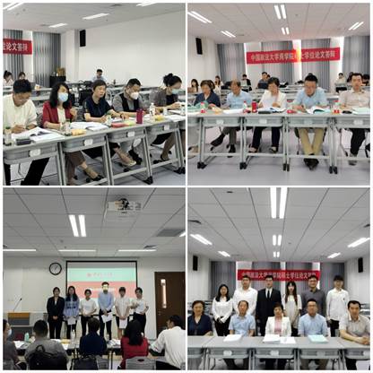 在答辩过程中,参与答辩同学从选题意义、论文框架、研究思路、主要内容以及创新之处等方面进行了简要陈述。随后,答辩组专家逐一进行点评并提问,就进一步完善论文提出了指导性意见和建议,答辩同学针对专家所提出的问题都做出了认真而细致的回答。