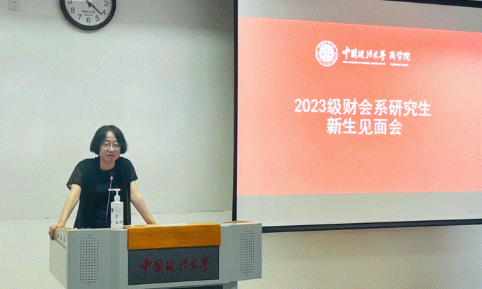 此后,副院长尹美群教授致辞。尹美群教授向全体学生表示欢迎与祝贺,并回顾了今年的招生情况。她肯定了审计专硕首次招生的圆满成功,指出近年来,法大整体声誉持续走高,录取分数线不断攀升,学生在就业市场普遍具有较强的竞争力。同时尹美群教授提醒大家,在经济形势不明朗,毕业生就业压力较大的大背景下,学校就像是蓄水池,大家要多储备知识,完善规划,以争取光明未来。