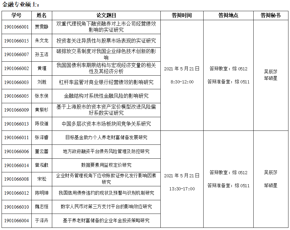 2021届商学院硕士生毕业论文答辩拟定于2021年5月13日--2021年5月20日在学院路校区进行。