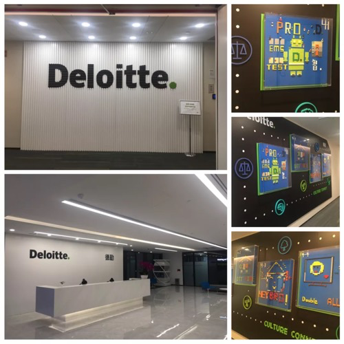 作为本次校企联合授课的福利,在德勤北京相关同事的带领下,本期30余位学员对北京分所新办公室进行了参观。办公室整体风格以黑、白、灰为主色调,搭配德勤蓝色和绿,同时采用了“北京特色古迹”、“科技元素”、“节能技术等设计亮点,彰显了独特的办公风格。