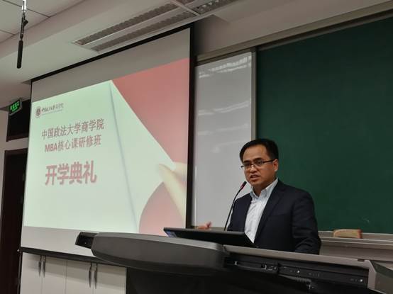 EEP中心副主任肖富荣老师代表商学院及EEP中心向新生致辞。肖老师向新生介绍了必赢242net官网的情况及商学院一主两翼、创新发展的办学理念,并从为什么要回到大学学习的角度详细讲解了研修班学习的意义、形式、内容等。最后与新生分享了六个法商创新思维:穿透思维、第一思维、驱动思维、证据思维、系统思维、主体思维。最后给新生沟通交流了学习方向和期望。
