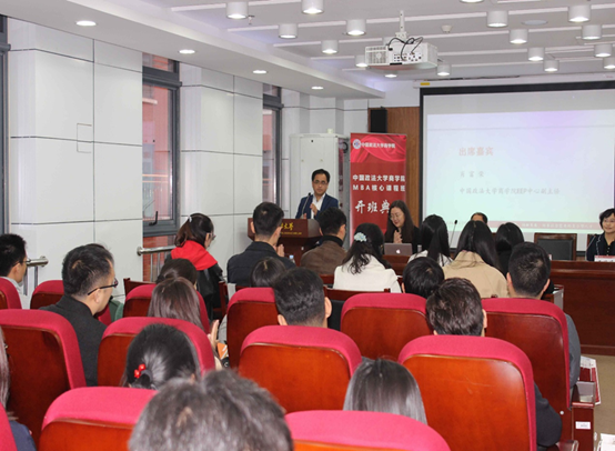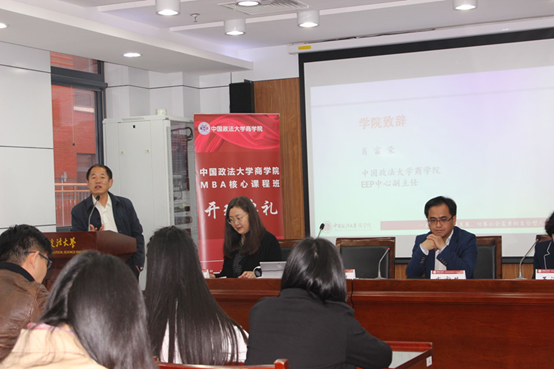 2018年4月14日,在连续经历高温、大雨、风雪和雾霾之后,北京迎来了一个晴朗的周末。法大商学院EEP中心经过半个多月的紧张筹备,为商学院2018级MBA核心课研修班的50名学员准备了一场虽不盛大,但很庄严,虽不华丽,但很务实,虽不张扬,但让每个同学都记忆深刻的开学典礼。