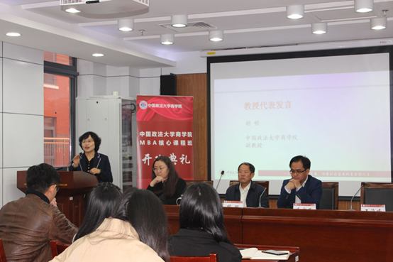 开学典礼由EEP中心王育敬老师主持,参会校内嘉宾有:商学院EEP中心副主任、商学院工会主席、教师代表胡明老师,商学院EEP中心副主任肖富荣老师。校外嘉宾有:2012级MBA校友王海峰,2012级MBA校友逯瑶。